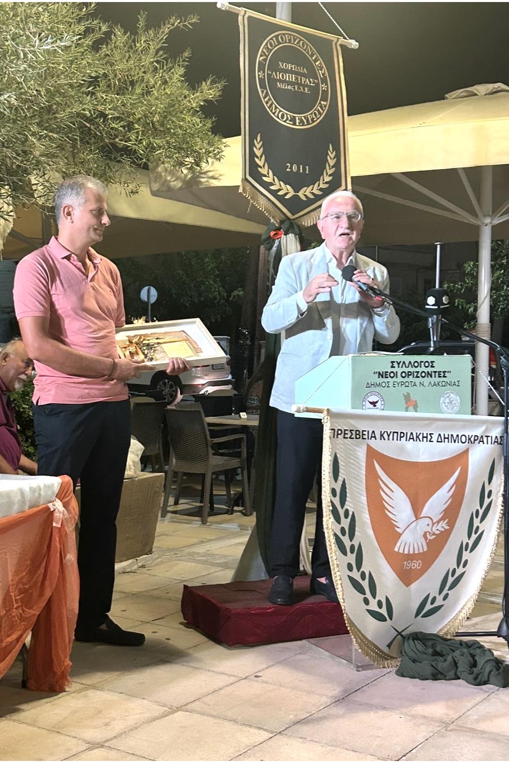 Ο ερευνητής Γιώργος Τσούκαλης, ο Πανος Σόμπολος, ο πρέσβης της Κύπρου και ο Ιωάννης Μαρωνίτης τιμήθηκαν στο 8ο Πανελλήνιο φεστιβάλ Ευρώτα.