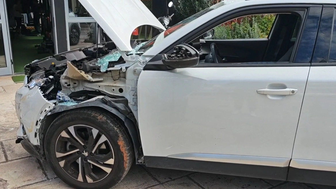 Το αυτοκίνητο κατεδάφισε τη βιτρίνα και μπήκε για κάποια μέτρα εντός του καταστήματος, προκαλώντας μεγάλες φθορές.