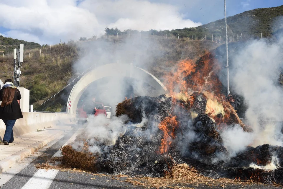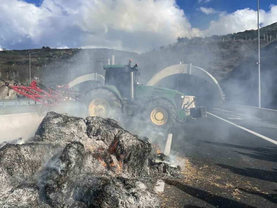 Στο σημείο έφτασαν περίπου 140 τρακτέρ, με τους αγρότες να ηχούν τις κόρνες των οχημάτων τους, ενώ αγρότες και κτηνοτρόφοι του μπλόκου της Νίκαιας προχώρησαν σε καύση δεμάτων με άχυρο, στέλνοντας μήνυμα συνέχισης των κινητοποιήσεων.