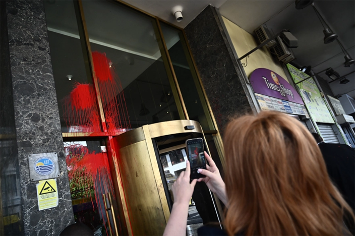 Ομόνοια: Επίθεση με μπογιές σε ξενοδοχείο που διοργανώνει συνέδριο για τη συνεργασία Ελλάδας – Ισραήλ (φώτο)