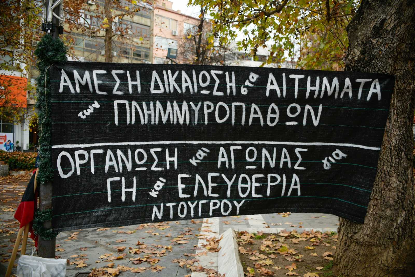 «Πλημμυρισμένοι όχι μόνο από τις λάσπες αλλά και από οργή», «τέρμα πια στον εμπαιγμό, αποζημίωση 100% εδώ και τώρα», «ο κόμπος έφθασε στο χτένι τώρα ολοκληρωμένη αντιπλημμυρική προστασία με ευθύνη του κράτους» ήταν μερικά από τα συνθήματα που αναγράφονταν στα πανό που κρατούσαν οι συγκεντρωμένοι.