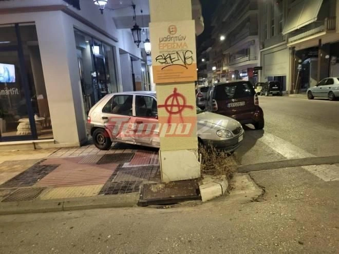 Η σύγκρουση ήταν τόσο σφοδρή που το ΙΧ εκτινάχθηκε πάνω στο πεζοδρόμιο, ενώ για ελάχιστα εκατοστά δεν μπήκε σε παρακείμενο κατάστημα.