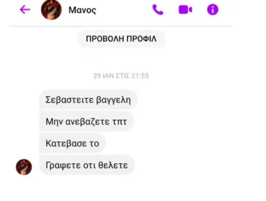 Ώρα: 21.55: Ο Μάνος Δασκαλάκης αποστέλλει μήνυμα, μέσω της εφαρμογής messenger (facebook) στον αρχισυντάκτη του αθλητικού τμήματος της «Π» και του pelop.gr, Βαγγέλη Γερογιάννη. Τον γνωρίζει από τότε που έπαιζε στα γήπεδα ποδοσφαίρου. Του ζητά να «κατέβει» το δημοσίευμα. Συγκεκριμένα γράφει: «Σεβαστείτε… Μην ανεβάζετε τπτ. Κατέβασε το. Γράφετε ότι θέλετε…».