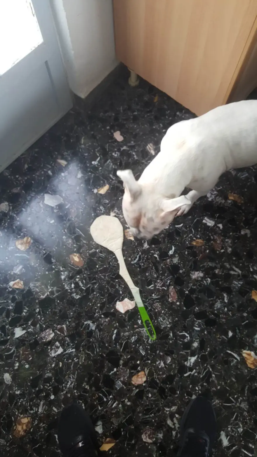 Αν τραβούσε κανονικά θα φαινόταν πως εγώ δεν χτυπούσα σε καμία περίπτωση το σκυλί, αλλά το πάτωμα και μάλιστα με τόση δύναμη ώστε να κάνει θόρυβο γιατί το αντικείμενο που κρατάω δεν είναι τίποτε άλλο από μια πλαστική μυγοσκοτώστρα, την οποία έχω καλύψει με χαρτοταινία».
