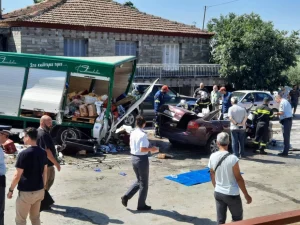 Η στιγμή που ο 55χρονος οδηγός φορτηγού βρίσκει ακαριαίο τέλος όταν αυτοκίνητο πέφτει με δύναμη επάνω του αποτυπώνεται σε βίντεο-ντοκουμέντο. «Όχι, όχι Θεέ μου. Μακελειό!», η κραυγή μιας γυναίκας η οποία παρακολουθεί σοκαρισμένη το δυστύχημα.
