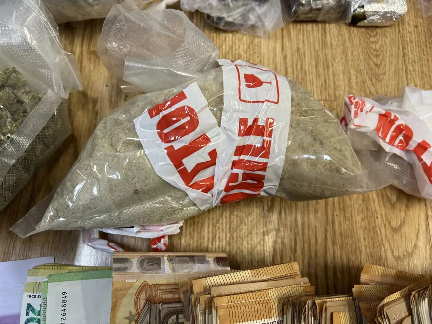 12 αεροστεγώς κλεισμένες πλαστικές συσκευασίες περιέχουσες κάνναβη υδροπονικής καλλιέργειας συνολικού μικτού βάρους 12.930 γραμμαρίων, τρεις αυτοσχέδιες συσκευασίες αλουμινόχαρτου περιέχουσες κοκαΐνη συνολικού μικτού βάρους 2,8 γραμμαρίων, δύο νάιλον συσκευασίες περιέχουσες κοκαΐνη συνολικού μικτού βάρους 240 γραμμαρίων, μία νάιλον συσκευασία περιέχουσα ροζ κοκαΐνη «TUSI» μικτού βάρους 875 γραμμαρίων, δύο νάιλον συσκευασίες περιέχουσες κεταμίνη χρώματος λευκού μικτού βάρους 875 γραμμαρίων, μία συσκευασία περιέχουσα μεθαμφεταμίνη χρώματος καφέ μικτού βάρους 545 γραμμαρίων και άλλα.