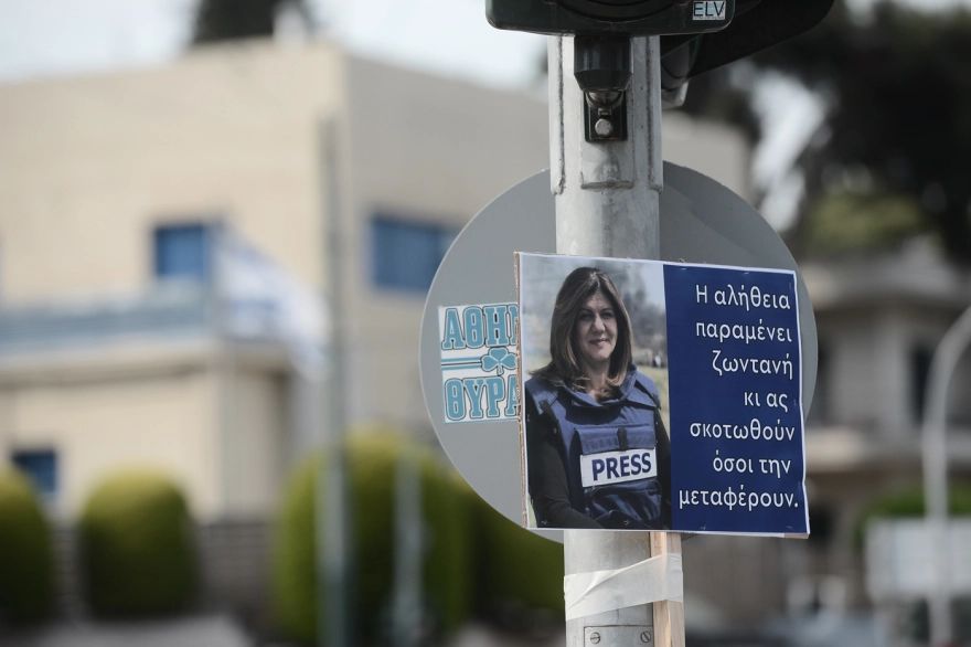 Πριν από τις 18:00 συγκεντρώθηκαν οι πρώτοι συμμετέχοντες στην πορεία με σημαίες της Παλαιστίνης και αφίσες με τη φωτογραφία της δημοσιογράφου που πυροβολήθηκε στο κεφάλι, την ώρα που κάλυπτε συγκρούσεις στη Τζενίν, στην κατεχόμενη Δυτική Όχθη.