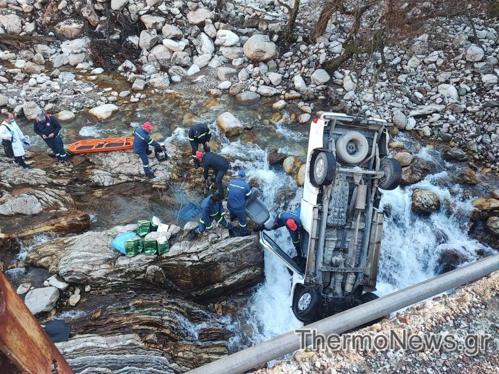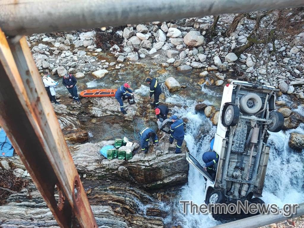 Ο οδηγός του αγροτικού οχήματος 4×4, πιθανόν λόγω ολισθηρότητας του οδοστρώματος έχασε τον έλεγχο του οχήματος και έπεσε από τη γέφυρα μέσα στο ποτάμι.