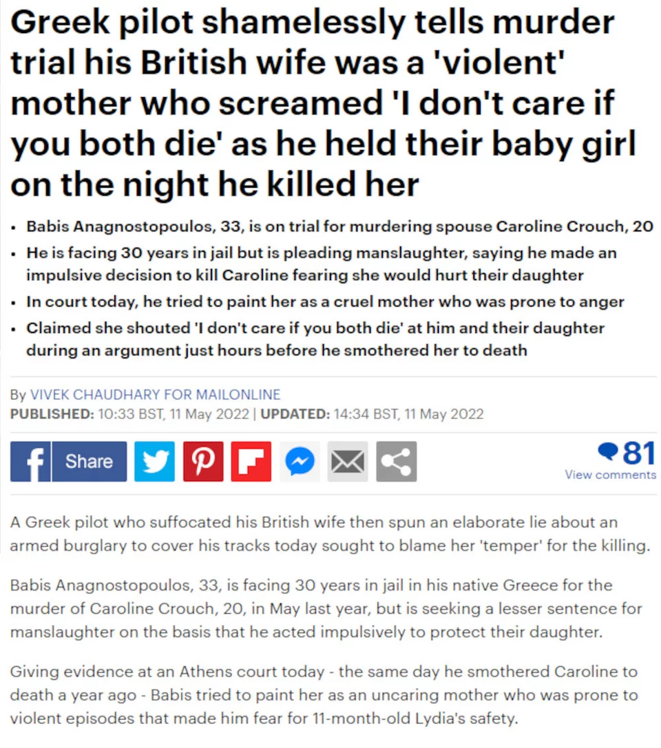 Στην βρετανική Daily Mail φιλοξενείται εκτενές ρεπορτάζ σχετικά με τη δίκη του Μπάμπη Αναγνωστόπουλου για τη δολοφονία της Κάρολαιν.