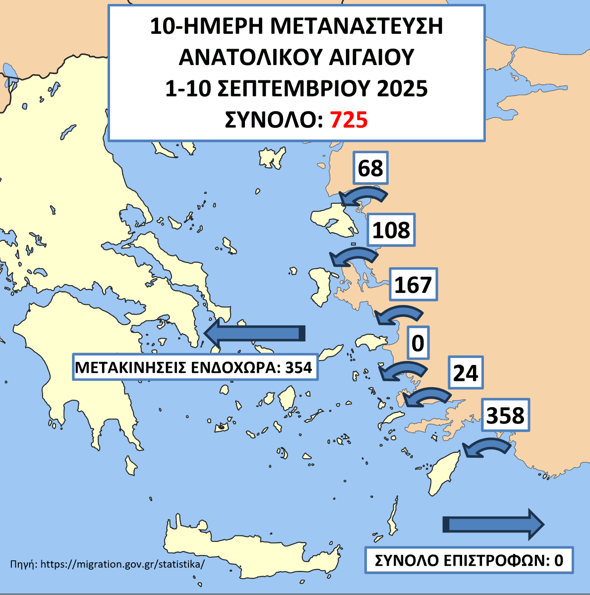 Στους 725 ανήλθαν οι λαθρομετανάστες που μπήκαν από τα νησιά του ανατ. Αιγαίου στην Ελλάδα από την 1η έως τις 10 Σεπτεμβρίου.