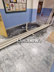 Από τύχη δεν τραυματίστηκε κάποιο παιδί ή δάσκαλος όταν κατέρρευσε το δίκτυο των σωληνώσεων από το ταβάνι του κτιρίου καθώς έγινε απογευματινή ώρα που το σχολείο ήταν κλειστό.