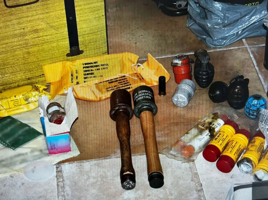 Στο διαμέρισμα του 51χρονου που βρίσκεται στην ίδια πολυκατοικία όπου αυτοπυροβολήθηκε ο φοιτητής, σε αποθήκες του υπογείου και στην σοφίτα του κτιρίου, αλλά και σε ένα σπίτι που διατηρεί σε χωριό των Ιωαννίνων, κατασχέθηκαν τρία πιστόλια διαμετρήματος 9mm, 7,65mm και 6,35mm, ένα περίστροφο με βυκίο χωρητικότητας επτά φυσιγγίων, ένα πυροβόλο επαναληπτικό τυφέκιο, ένα πυροβόλο τυφέκιο μονής βολής, ένα μη λειτουργικό περίστροφο, μια γερμανική και μια οξειδωμένη ιταλική χειροβομβίδα του Β΄ Παγκοσμίου πολέμου, μια εκπαιδευτική χειροβομβίδα, άλλες τέσσερις χειροβομβίδες χωρίς εκρηκτικό και σύστημα πυροδότησης, ένας κορμός με κέλυφος χειροβομβίδας, ένας εκπαιδευτικός όλμος, μια κάννη υποπολυβόλου, ένας σιγαστήρας πολεμικού όπλου, 485 φυσίγγια διαφόρων τύπων όπλων και διαμετρημάτων, 39 γεμιστήρες, 40 ξιφολόγχες, κοντάκια, κάννες και άλλα τμήματα πολεμικών τυφεκίων, 20 κροτίδες, 16 ναυτικές φωτοβολίδες χειρός, τέσσερις συσκευασίες φωτοβολίδων μαζί με τρεις εκτοξευτήρες.