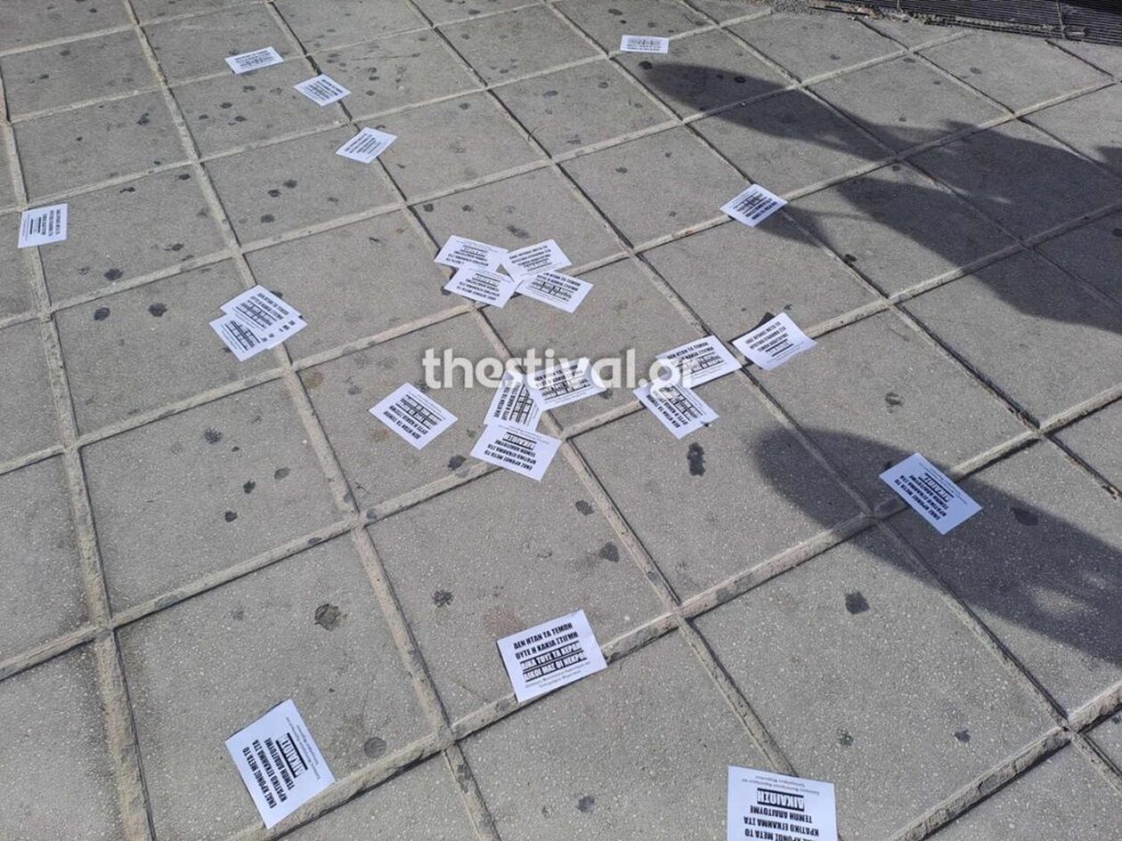 Στη συνέχεια φώναξαν συνθήματα μπροστά στην είσοδο του Νέου Σιδηροδρομικού Σταθμού Θεσσαλονίκης και πέταξαν τρικάκια.