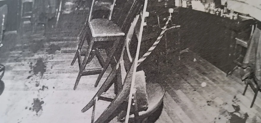 Στη συνέχεια περιέγραψε πώς εκείνος γύρισε το κεφάλι του για να συνεχίσει να παίζει μουσική στο μαγαζί και τότε άκουσε ένα θόρυβο. «Γυρνώντας είδα αρχικά ένα σκαμπό να έχει πέσει κάτω και στο πάτωμα κάποιες κόκκινες κηλίδες που αρχικά φαντάστηκα ότι είχε πέσει κάποιο ποτό. Τότε είδα το παιδί που είχε έρθει και μιλούσε με τον Νορβηγό να φωνάζει και να λέει ”μας μαχαίρωσε αυτός ρε” και να βγαίνει έξω από το μαγαζί. Ο Νορβηγός από όσο θυμάμαι καθόταν στο ίδιο σημείο