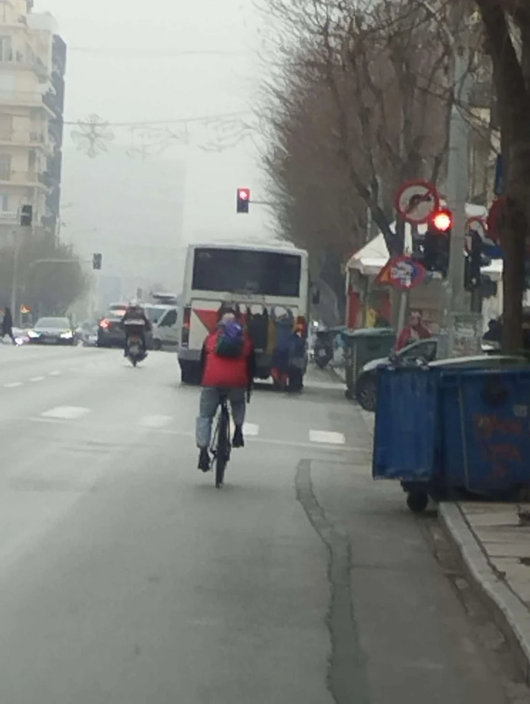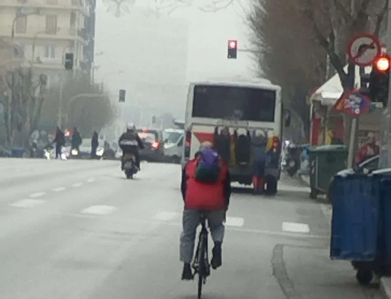 Τρεις νεαροί, «κρεμάστηκαν» από το πίσω μέρος λεωφορείου στο κέντρο της Θεσσαλονίκης, ρισκάροντας την σωματική τους ακεραιότητα.