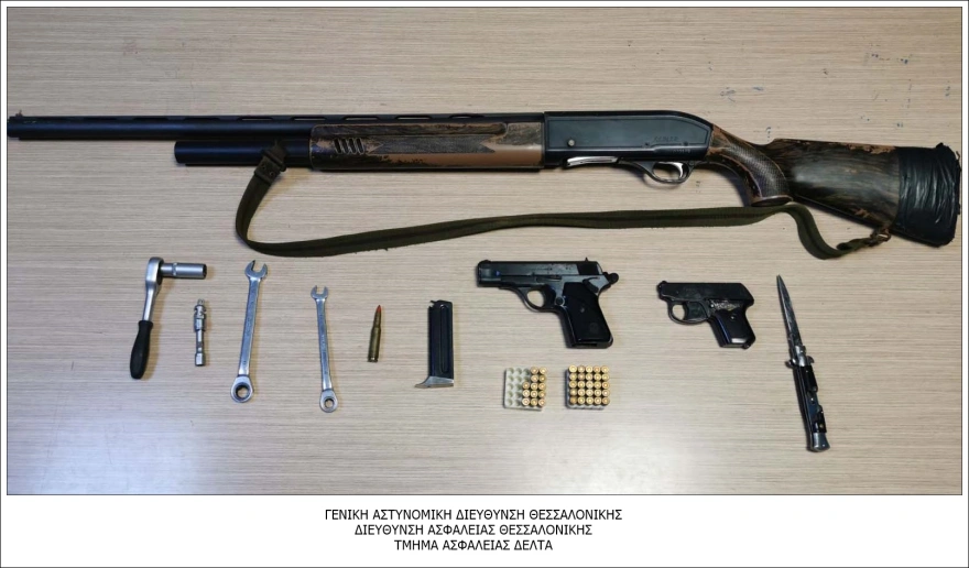 Σε έρευνα που ακολούθησε στην οικία του 38χρονου βρέθηκαν και κατασχέθηκαν ένα πιστόλι με γεμιστήρα των 8 φυσιγγίων, ένα πιστόλι άνευ αριθμού, 30 φυσίγγια, ένα φυσίγγιο πολεμικού όπλου, ένα μαχαίρι – αναδιπλούμενο (στιλέτο) και μία κυνηγετική καραμπίνα.