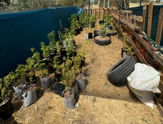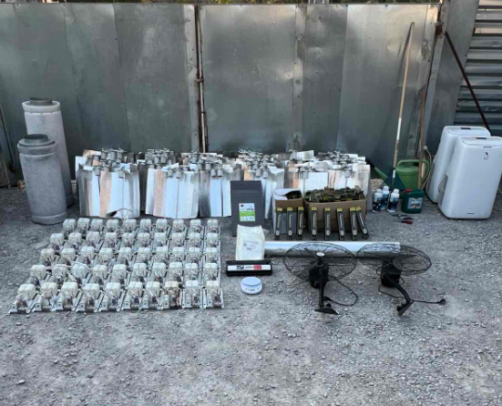 Σε έρευνα διαμορφωμένου εξωτερικού χώρου στο προαύλιο του σπιτιού του, στην ευρύτερη περιοχή των Ταγαράδων, βρέθηκαν 236 δενδρύλλια κάνναβης, τα οποία εκριζώθηκαν και κατασχέθηκαν, καθώς και εξοπλισμός που χρησιμοποιούσε ο συλληφθείς για την καλλιέργειά τους.