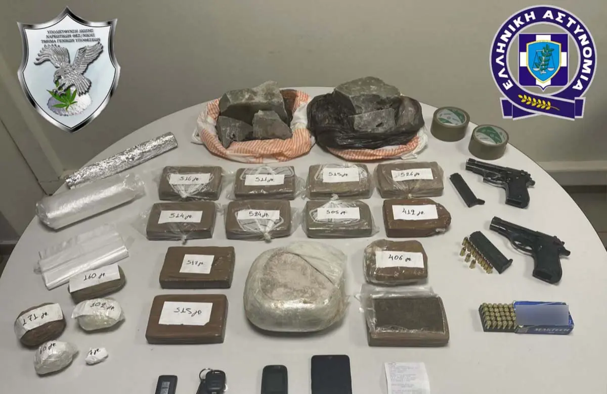 Στη συγκεκριμένη αστυνομική επιχείρηση, πραγματοποιήθηκαν έρευνες σε υπαίθριους χώρους και σε διαμερίσματα που χρησιμοποιούσαν σε περιοχές του Νομού Αττικής αλλά και σε δύο επιβατικά οχήματα που χρησιμοποιούσαν για τις μετακινήσεις τους και τη μεταφορά των ναρκωτικών, κατά τις οποίες βρέθηκαν και κατασχέθηκαν συνολικά σχεδόν 9 κιλά ηρωίνης, μικροποσότητα κοκαΐνης, δενδρύλλια και ποσότητα κάνναβης, δύο πιστόλια, φυσίγγια κ.ά.