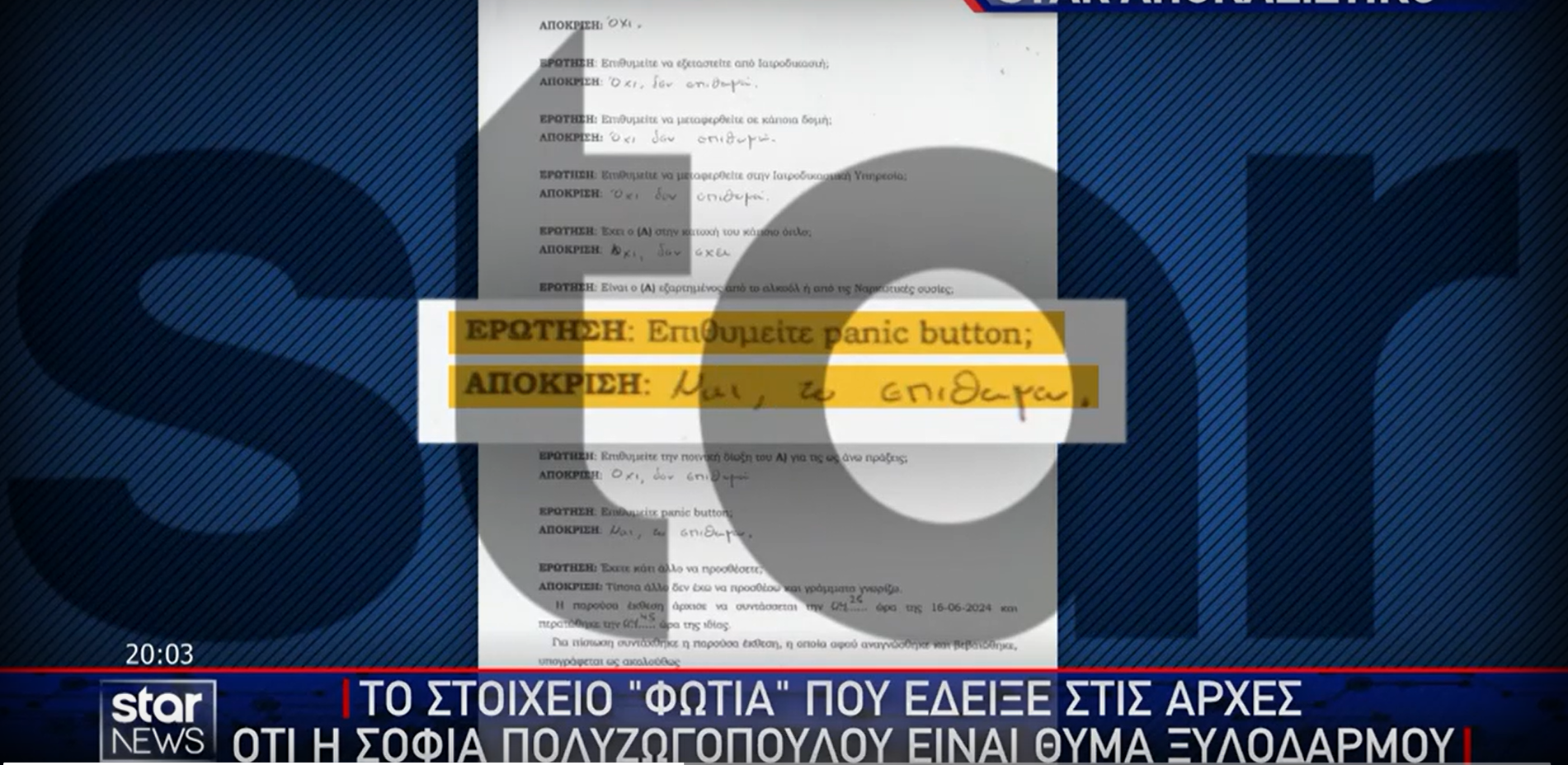 Το έγγραφο που δημοσίευσε το Star είναι αυτό που αποκάλυψε στις Αρχές, ότι ο Απόστολος Λύτρας ήταν εκείνος που προκάλεσε τα τραύματα στη σύζυγό του και δεν «έπεσε από τις σκάλες».