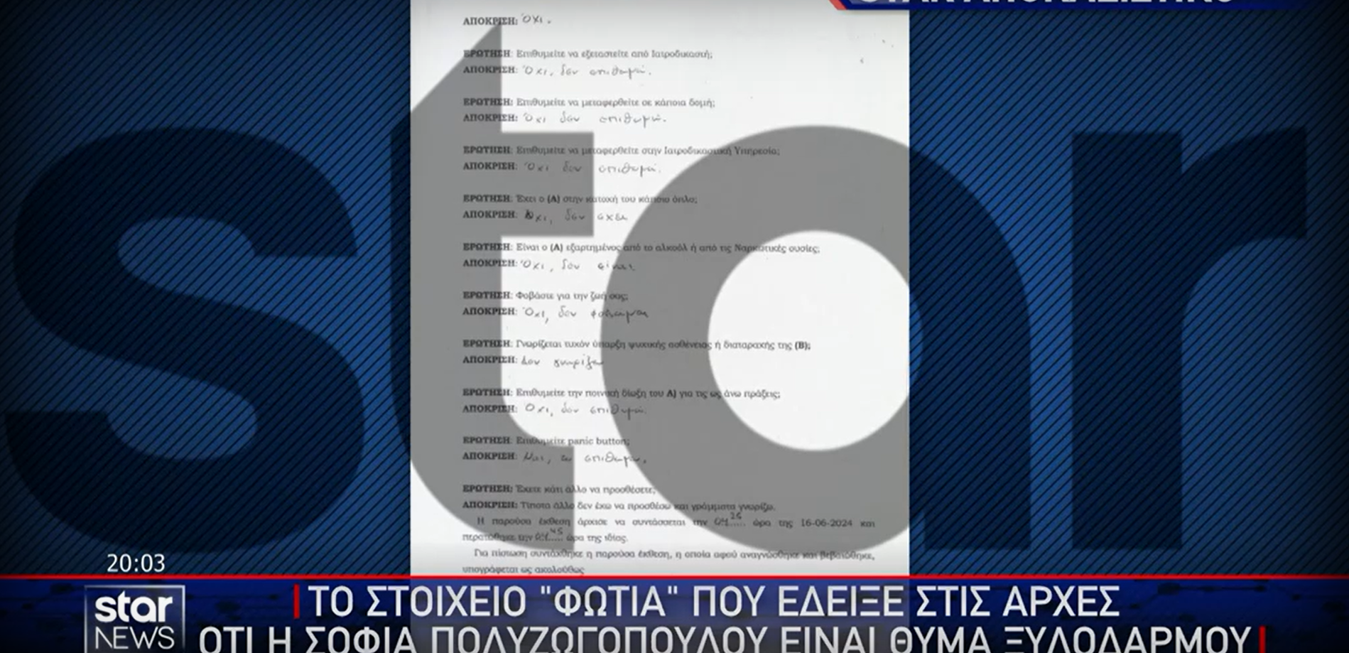 Το έγγραφο που δημοσίευσε το Star είναι αυτό που αποκάλυψε στις Αρχές, ότι ο Απόστολος Λύτρας ήταν εκείνος που προκάλεσε τα τραύματα στη σύζυγό του και δεν «έπεσε από τις σκάλες».