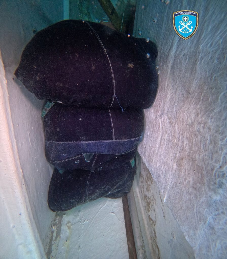Με τη συνδρομή ιδιώτη δύτη, ανασύρθηκαν από το εσωτερικό του σκάφους πέντε αυτοσχέδιες πλαστικές συσκευασίες που περιείχαν ποσότητα ναρκωτικής ουσίας, πιθανόν ακατέργαστης κάνναβης, συνολικού μικτού βάρους 79,75 κιλών.