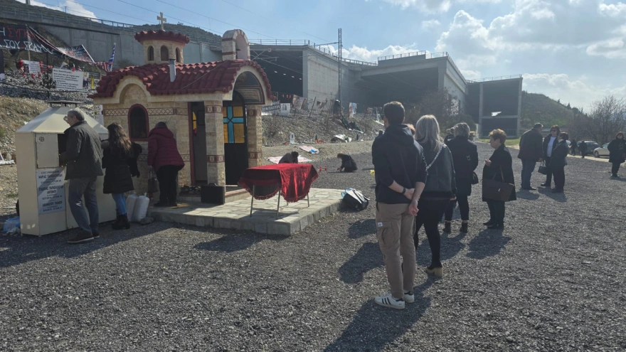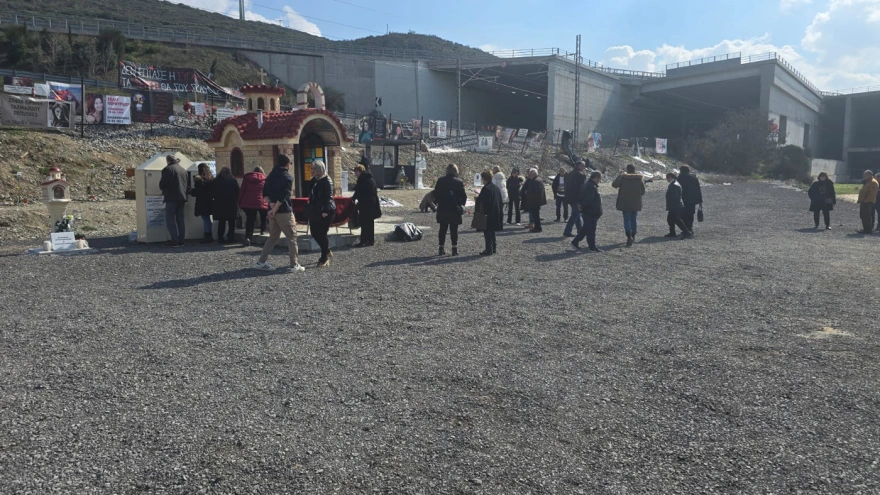 Τρισάγιο στη μνήμη των 57 θυμάτων του εγκλήματος των Τεμπών τελέστηκε σήμερα (26/2) το πρωί στο σημείο της τραγωδίας.