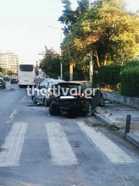 Το τροχαίο ατύχημα σημειώθηκε στο ύψος της πύλης Εμπορίου της ΔΕΘ, μπροστά από την αίθουσα τελετών του ΑΠΘ.