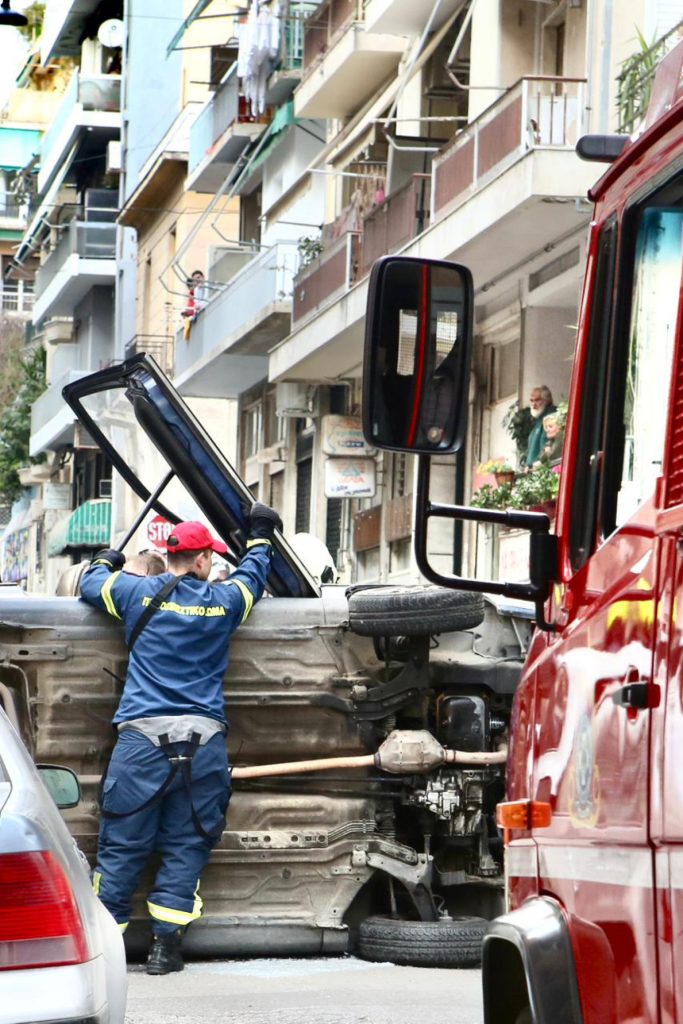 Σύμφωνα με πληροφορίες ένας ηλικιωμένος φέρεται να είχε εγκλωβιστεί μέσα στο όχημα, ωστόσο στη συνέχεια η επιχείρηση απεγκλωβισμού του στέφθηκε με επιτυχία.