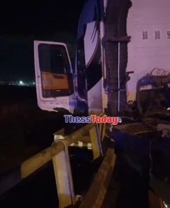 Στην εθνική οδό Θεσσαλονίκης – Αθηνών στο ρεύμα προς Αθήνα, σημειώθηκε τροχαίο ατύχημα καθώς μία νταλίκα συγκρούστηκε με ΙΧ αυτοκίνητο στη γέφυρα του Αξιού.