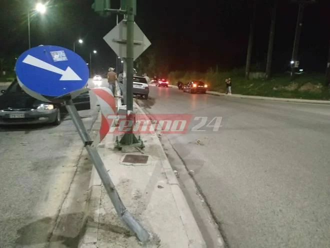 Αποτέλεσμα ήταν να πέσει πάνω σε ταμπέλα οδικής σήμανσης και μετά να καταλήξει πάνω σε κράσπεδο.