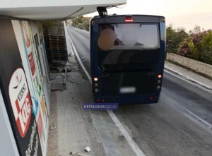 Τροχαίο ατύχημα σημειώθηκε το πρωί του Σαββάτου 19 Ιουλίου στα Βλαχάτα της Κεφαλονιάς, όταν ένα τουριστικό λεωφορείο– υπό αδιευκρίνιστες μέχρι στιγμής συνθήκες – εξετράπη της πορείας του και προσέκρουσε σε μπαλκόνι κατοικίας που βρίσκεται σε κοντινή απόσταση από τον δρόμο.
