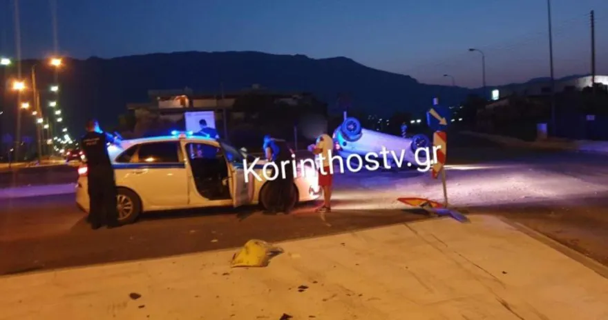 Ο οδηγός και οι επιβαίνοντες βγήκαν μόνοι τους από το όχημα, ενώ δεν φέρουν τραύματα, σύμφωνα με το korinthostv.gr.