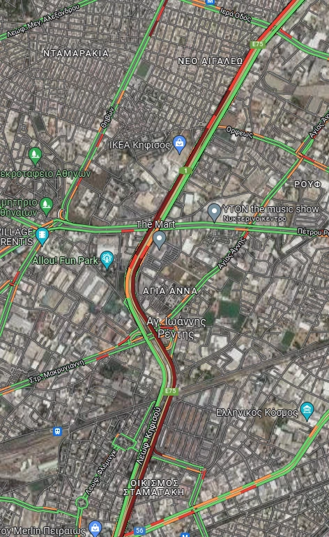 Προβλήματα παρατηρείται και στην κάθοδο του Κηφισού, όπως και στη Λεωφόρο Κηφισίας και στην Καλλιρρόης.