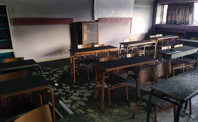 Όπως διαπιστώθηκε άγνωστοι, αφού αναρριχήθηκαν από στέγαστρο, παραβίασαν παράθυρο αίθουσας στον όροφο του σχολείου.
