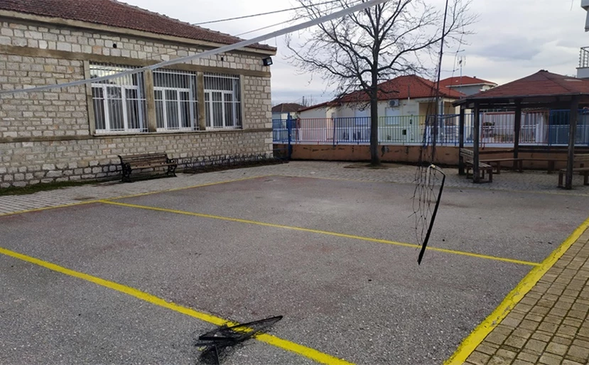 Οι δράστες κατέστρεψαν το φιλέ του βόλεϊ ενώ αφαίρεσαν την ελληνική σημαία από τον ιστό της.