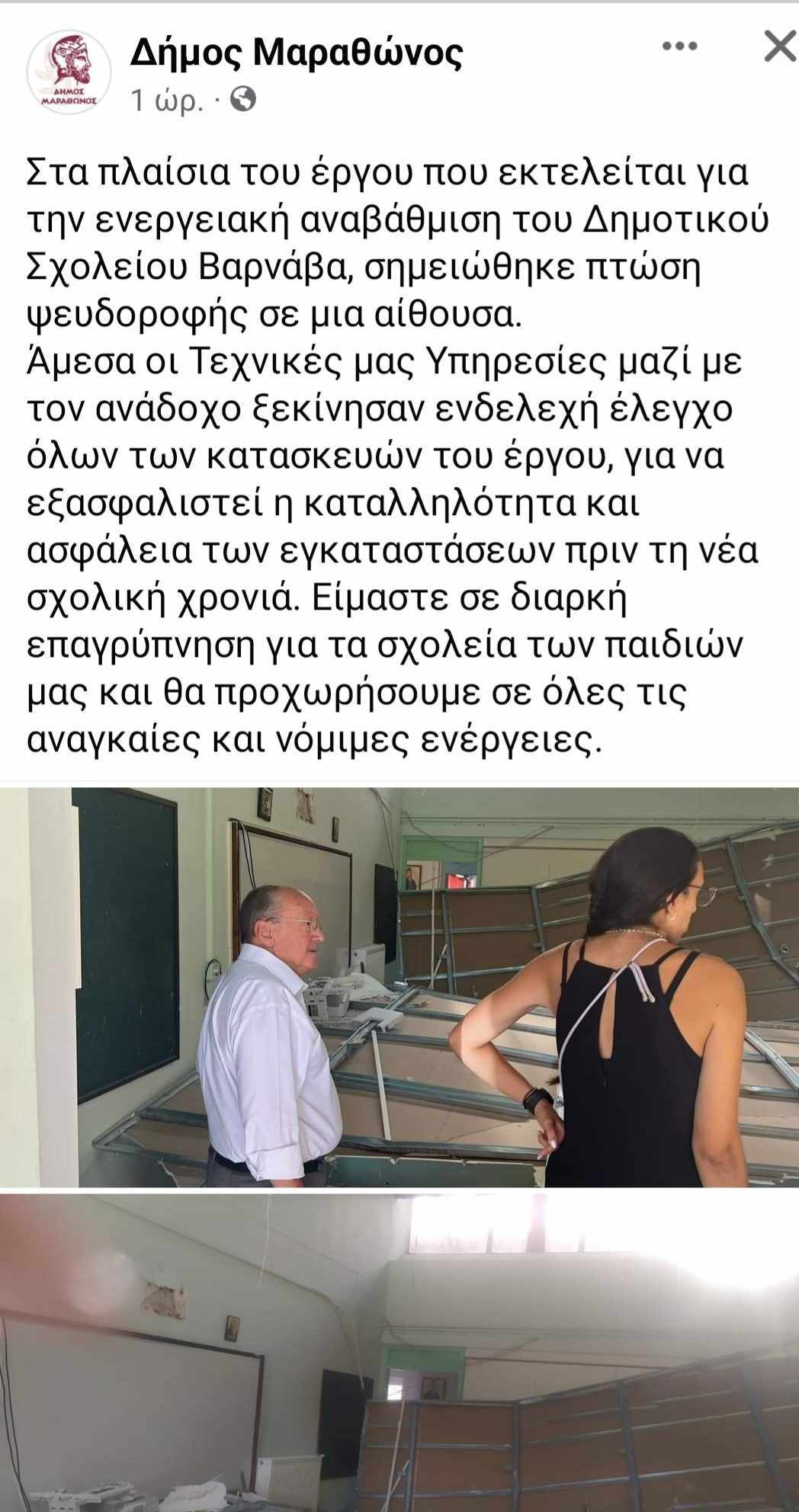 Παραλίγο να σημειωθεί τραγωδία σε αίθουσα του Δημοτικού Σχολείου Βαρνάβα, καθώς έπεσε ολόκληρη η οροφή.