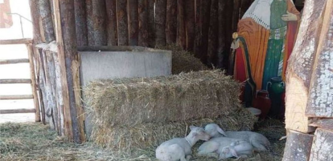 Στις δύο φάτνες που έστησαν υπάρχουν μέσα αρνάκια και πόνυ. Στη μία, σύμφωνα με την εφημερίδα Μακεδονία, τρία αρνάκια και ένα πόνυ δεμένο και στην άλλη δύο αρνάκια και ένα πόνυ, επίσης και αυτό δεμένο.