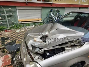 Χανιά: Μπαλκόνι κτηρίου υποχώρησε και έπεσε πάνω σε σταθμευμένο αυτοκίνητο (φώτο)