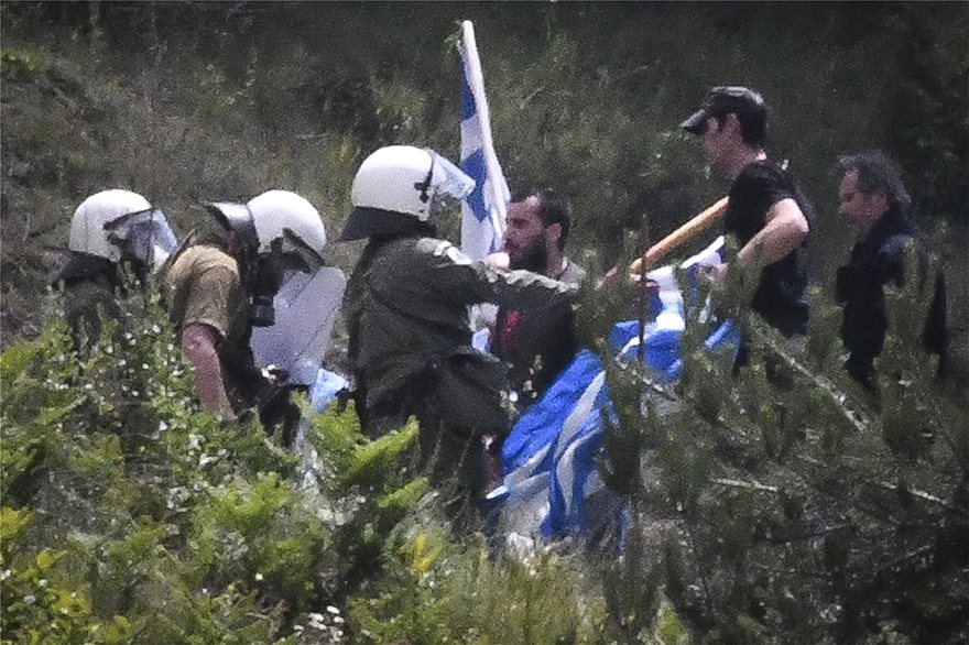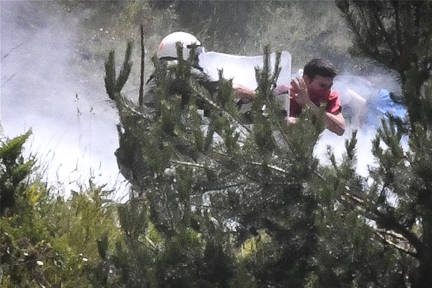 Οι διαδηλωτές προσπαθούν να σπάσουν τον κλοιό των ΜΑΤ για να φτάσουν στο χωριό Ψαράδες, αλλά, όπως προαναφέραμε, είναι λίγοι και άοπλοι σε σχέση με τις δυνάμεις ασφαλείας.
