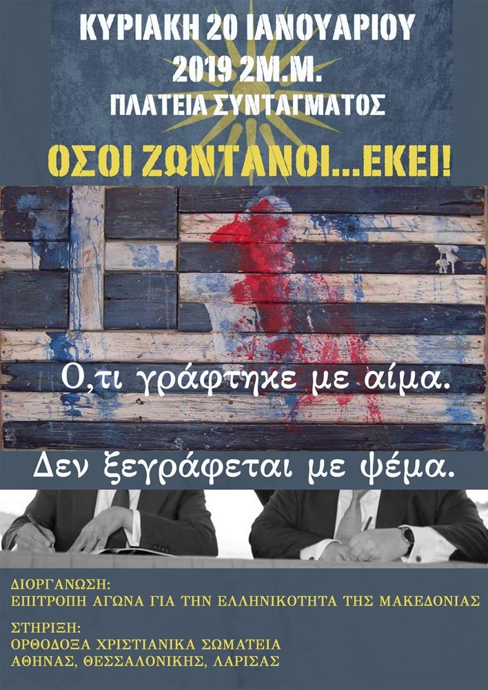 Το συλλαλητήριο θα πραγματοποιηθεί την Κυριακή 20/01 στις 14:00 στην Πλατεία Συντάγματος.