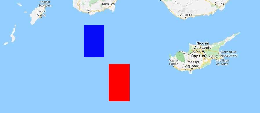 Με κόκκινο χρώμα η περιοχή που θα πραγματοποιήσει την έρευνά του το Oruc Reis ενώ με μπλε η περιοχή των ασκήσεων με πραγματικά πυρά.