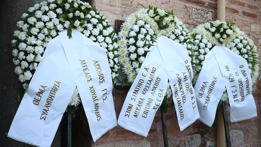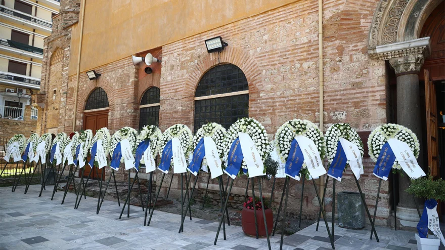 Συγγενείς και φίλοι έχουν συγκεντρωθεί αυτή την ώρα στον Ιερό Ναό της Θεού Σοφίας στη Θεσσαλονίκη για να αποχαιρετήσουν τον δικό τους άνθρωπο, ενώ το «παρών» δίνουν και αξιωματικοί του ελληνικού στρατού.