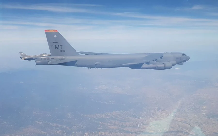 Όπως ανακοινώνει το ΓΕΕΘΑ, την Παρασκευή 26 Αυγούστου 2022 και μετά από αίτημα του NATO Air Command (NATO AIRCOM), ένα Στρατηγικό Βομβαρδιστικό Β-52 της Bomber Task Force των ΗΠΑ κατά την πτήση του στο πλαίσιο της Διασυμμαχικής Επιχείρησης «ONYX SWING» πραγματοποίησε με τις Ελληνικές Ένοπλες Δυνάμεις συνεκπαιδεύσεις αναχαίτισης, εγγύς αεροπορικής υποστήριξης και συνοδείας στο FIR Αθηνών.