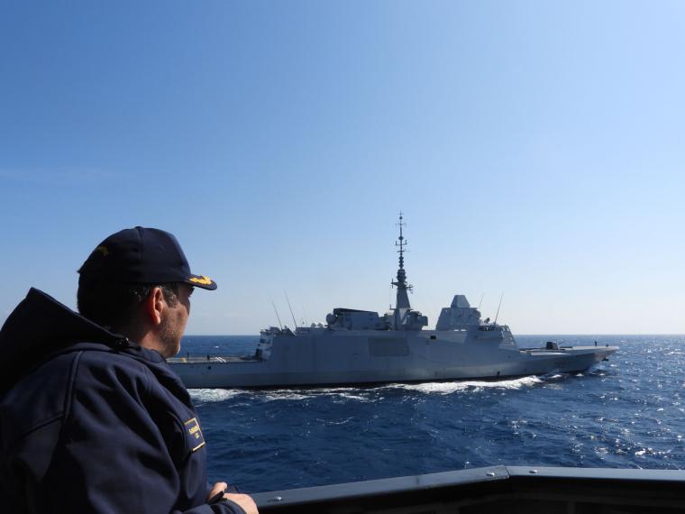 Συνεκπαίδευση PASSEX (Passing Exercise) της φρεγάτας «Ψαρά» και δύο μαχητικών αεροσκαφών F-16 με τη γαλλική φρεγάτα «FS Lorraine» στην ευρύτερη θαλάσσια περιοχή νότια της Κρήτης διεξήχθη χθες, Μ. Τετάρτη 12 Απριλίου, στο πλαίσιο της στρατιωτικής συνεργασίας Ελλάδας και Γαλλίας.