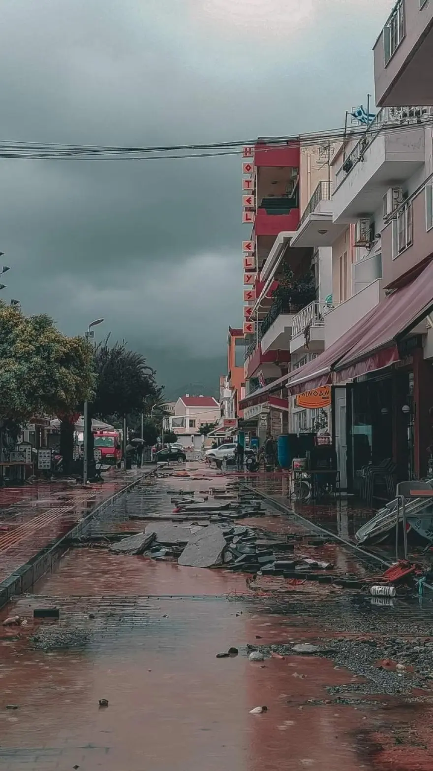 Αυτοκίνητα παρασύρθηκαν, στοιβάχτηκαν το ένα πάνω στο άλλο και κάποια έφτασαν μέχρι τη θάλασσα ενώ κάποιοι γλίτωσαν την τελευταία στιγμή. Υποδομές καταστράφηκαν, μαγαζιά και σπίτια βούλιαξαν στη λάσπη και το νερό.