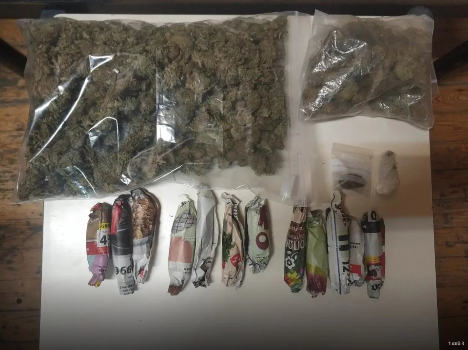 326 γραμμάρια κάνναβης, μικροποσότητα κοκαΐνης ηλεκτρονική ζυγαριά ακριβείας, πιστόλι, κυνηγητικό όπλο, 2 γεμιστήρες πιστολιού, 42 φυσίγγια διαφόρων τύπων και διαμετρημάτων, κινητό τηλέφωνο ενώ επιπλέον κατασχέθηκε το χρηματικό ποσό 20.425 ευρώ και 347 δολάρια ως προερχόμενα από παράνομες δραστηριότητες.