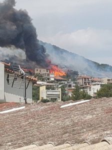 Η φωτιά καίει χαμηλή βλάστηση και βρίσκεται κοντά σε σπίτια.
