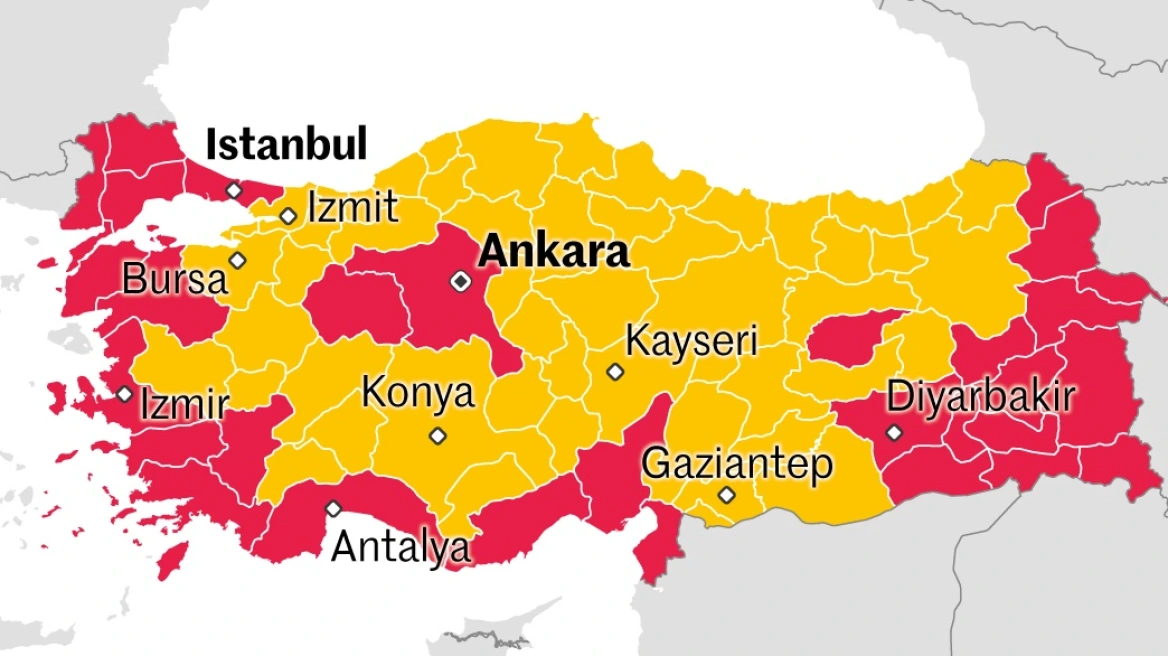 Στον χάρτη, διακρίνονταν οι περιοχές που έχουν «κερδίσει» οι δύο μονομάχοι, Ταγίπ Ερντογάν και Κεμάλ Κιλιτσντάρογλου, οι οποίοι έχουν στρέψει, πλέον, το βλέμμα τους στον β’ γύρο της 28ης Μαΐου.