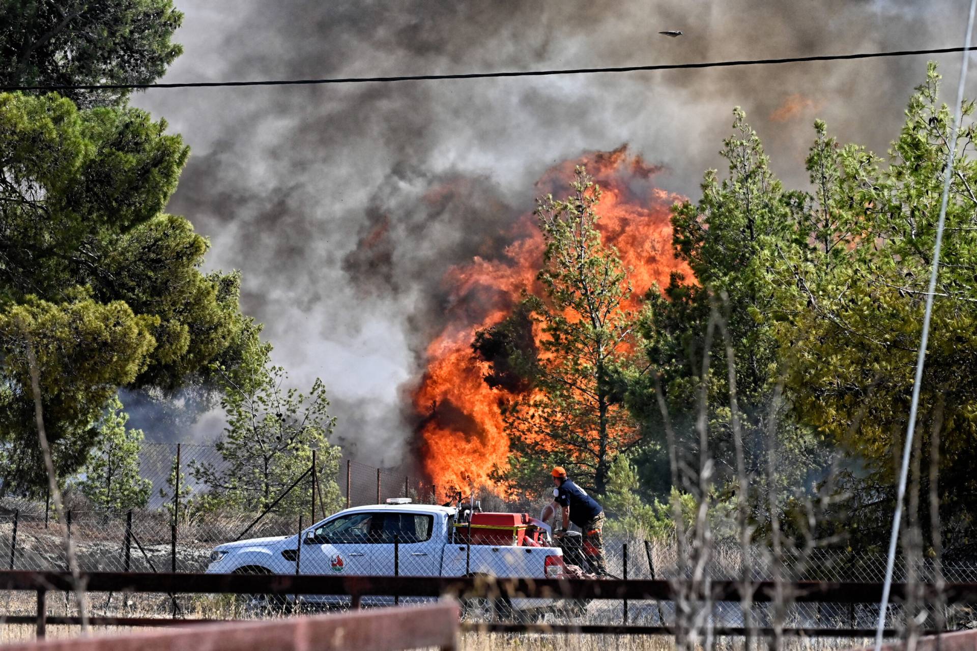 Η φωτιά ξεκίνησε από την Καλιθέα, κατευθύνεται στους οικισμούς Παράδεισο και στη Γαλήνη και τώρα προχωρά καίγοντας το πευκοδάσος της περιοχής και κινείται προς τον Άγιο Δημήτριο. «Θέλω να πιστεύω ότι δεν θα φτάσει εκεί», είπε ο αντιπεριφερειάρχης.