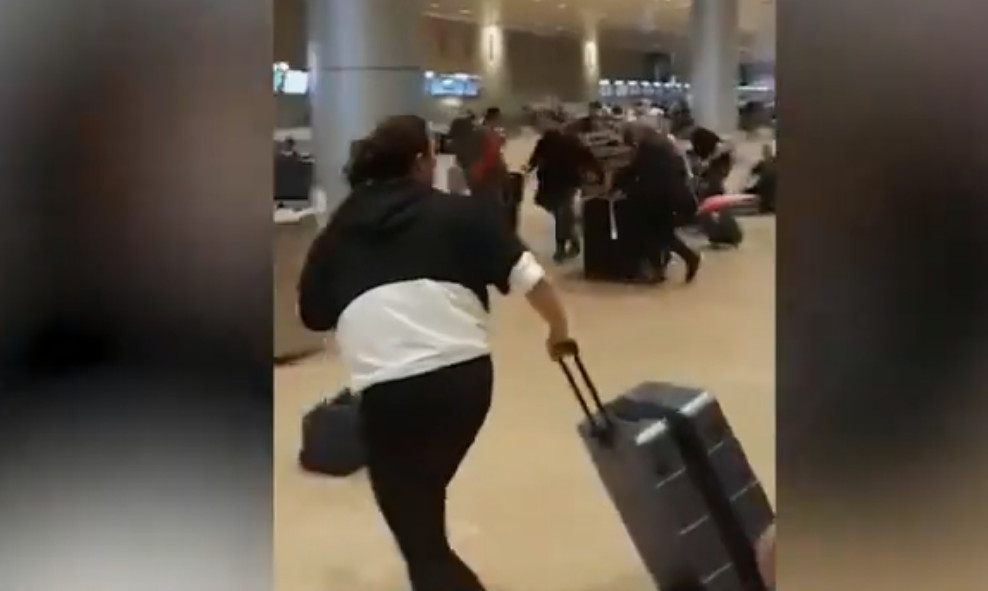 Βίντεο που κυκλοφόρησε στα μέσα κοινωνικής δικτύωσης έδειξε πανικόβλητους επιβάτες να σκορπίζονται στην αίθουσα αναχωρήσεων του αεροδρομίου Μπεν Γκουριόν κοντά στο Τελ Αβίβ την Πέμπτη.